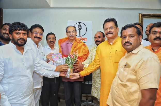 यावेळी शिवसेना जिल्हाप्रमुख तथा श्री विठ्ठल रुक्मिणी मंदिरे समिती सदस्य संभाजी शिंदे यांच्या हस्ते शिवसेना पक्ष प्रमुख उद्धव ठाकरे यांचा सत्कार शाल, दैनंदिनी व पुष्पगुच्छ देऊन करण्यात आला.