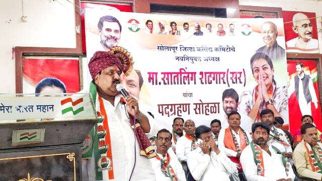 यावेळी बोलताना नूतन जिल्हाध्यक्ष सातलिंग शटगार म्हणाले की,आदरणीय सुशीलकुमार शिंदे,खासदार प्रणितीताई शिंदे यांच्यामुळे मला जिल्हाध्यक्ष पदाची संधी मिळाली आहे. त्यांच्या विश्वासास पात्र राहून जिल्हा काँग्रेसचे काम चांगल्या प्रकारे करून पक्ष वाढविण्याचे काम करणार आहे. शिंदे साहेब आणि प्रणितीताई यांच्या मार्गदर्शना खाली लवकरच जिल्ह्याच्या दौर्याची सुरुवात पंढरपूर पासून करणार आहे आणि समारोप अक्कलकोट येथे होणार आहे.या जिल्हा दौऱ्याच्या माध्यमातून ग्रामीण भागातील कार्यकर्त्यांच्या अडचणी,बूथ यंत्रणा मजबूत करणे,शेतकऱ्यांचे प्रश्न तसेच जनभावना जाणून घेऊन संघटन बांधणीचे काम करणार आहे.त्याचप्रमाणे जिल्हाभर तालुकाध्यक्ष व कार्यकर्त्यांच्या सहकार्याने मतदारयाद्याचे पडताळणी करण्याचे काम सुद्धा सुरू करणार आहे.१५ ऑगस्ट नंतर जिल्ह्यातील सर्व प्रमुख कार्यकर्त्यांचे प्रशिक्षण,वक्ता प्रशिक्षण घेणार असून त्याचा फायदा येणाऱ्या निवडणुकीत होणार आहे. पक्षातील गळती थांबविण्यासाठी एक समिती स्थापन करणार नाराजांची नाराजी दूर करून त्यांना पक्षात पुन्हा सक्रिय होण्यासाठीही प्रयत्न करणार आहे.मन,मेंदू मनगटाच्या जोरावर येणाऱ्या जिल्हा परिषद,पंचायत समिती निवडणुकीत जास्तीत जास्त उमेदवार निवडून आणण्याचा प्रयत्न करेन, मला संधी दिल्याबद्दल पुन्हा एकदा खा.राहुल गांधी, खा.प्रियंका गांधी,मल्लिकार्जुन खरगे, माजी केंद्रियमंत्री सुशीलकुमार शिंदे,प्रदेश अध्यक्ष हर्षवर्धन सपकाळ,खासदार प्रणितीताई शिंदे यांचे आभार व्यक्त करतो.