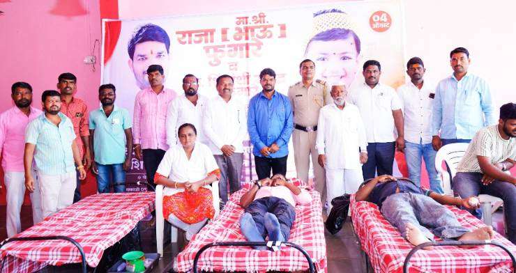 समाजसेवक नेहरू युवा मंडळाचे अध्यक्ष राजाभाऊ फुगारे यांच्या वाढदिवसानिमित्त ४५ रक्तदात्यांनी रक्तदान केले.